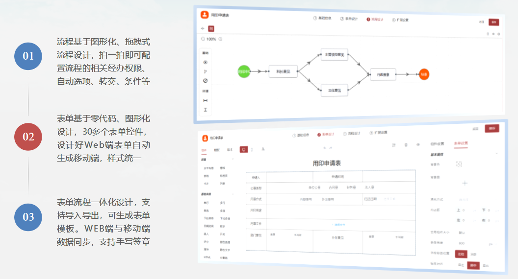 1、全核心流程线上化、协同化,无线下断点,流程数据自动采集;